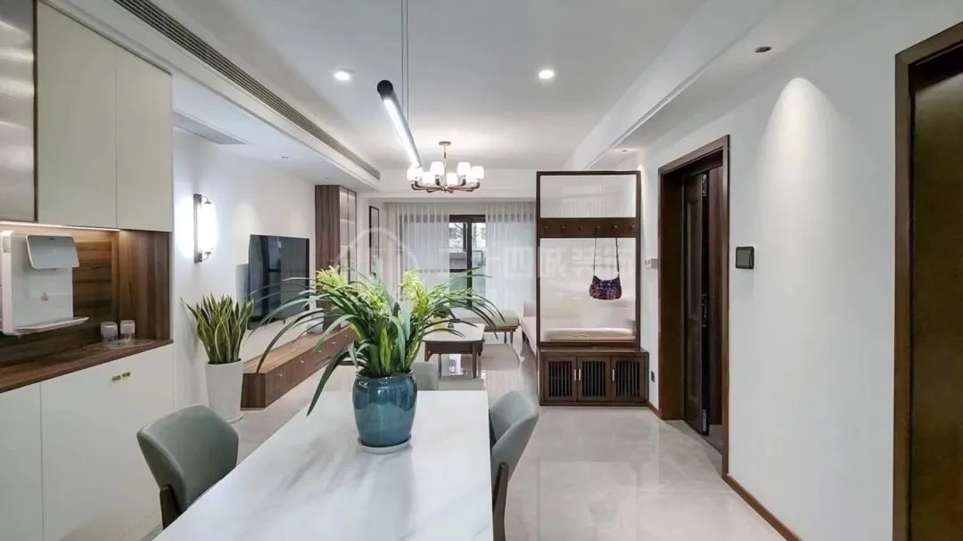 本案例为120㎡套三户型,业主是准备用来退休养老的,考虑到业主的需求,选择了新中式,以现代设计为基础,融入了诗意的家居软装,为空间注入了一份雅致与情趣气质。