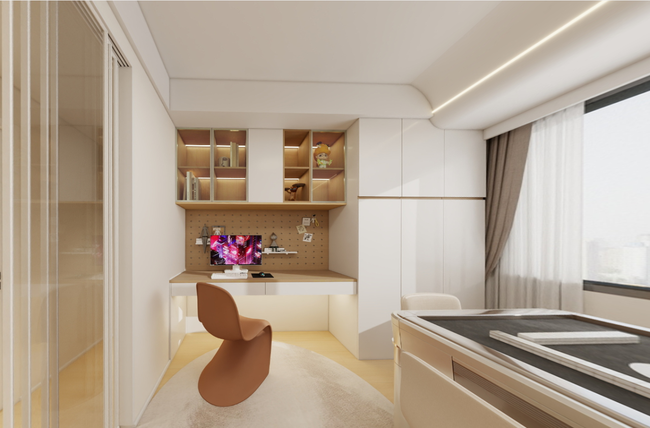 灯光设计:嵌入式射灯和线性灯带提供均匀的照明,增强空间的层次感。