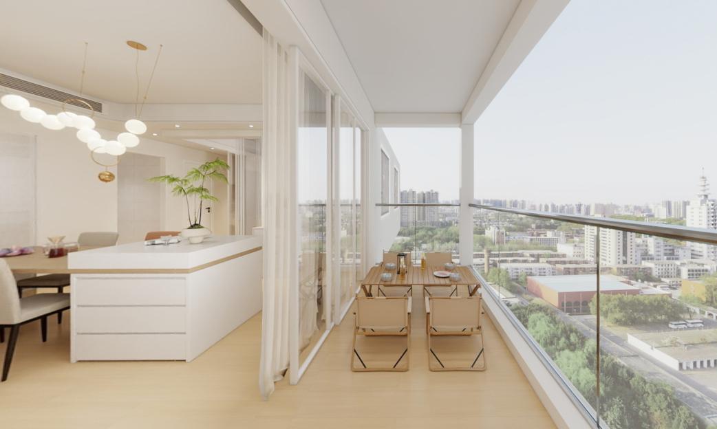 开放式布局:客厅与餐厅、阳台无缝连接,增强了空间的通透感,适合小户型家庭。