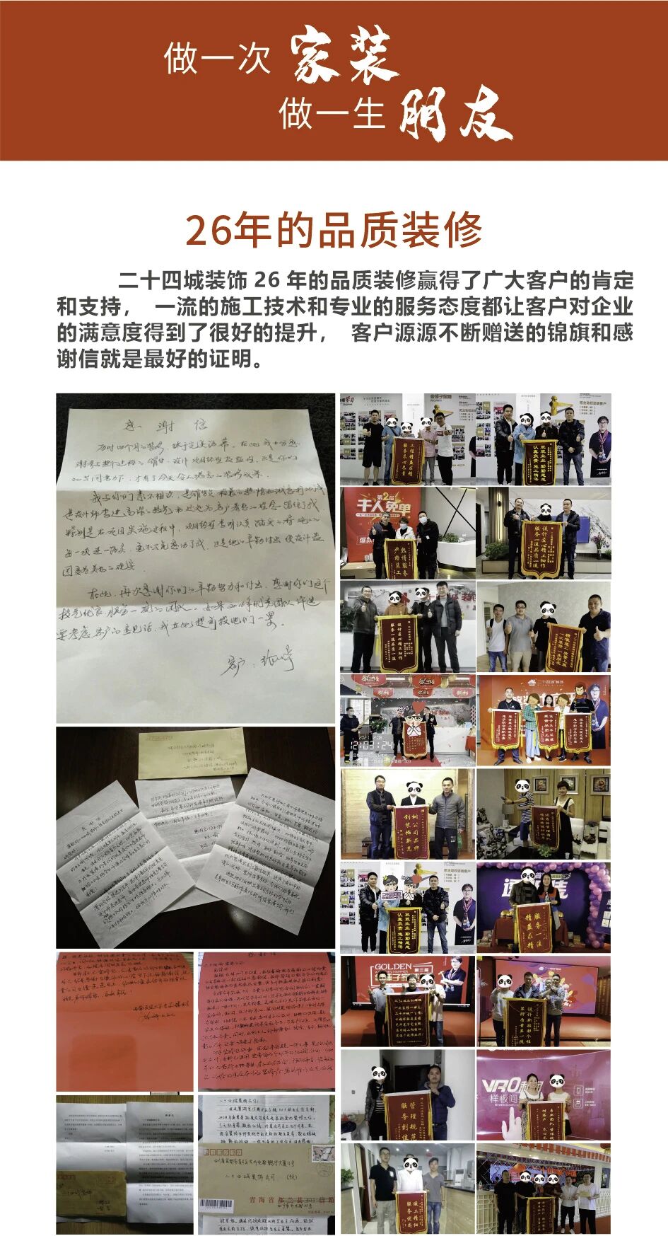 对于二十四城装饰而言,“雄起”精神则转化为“对品质的坚守、对匠心的追求、对服务的承诺”。二十六年来,从第一单业务到如今覆盖全川的服务网络,这家企业始终秉持着“做一次家装,做一生朋友”的川人性格。