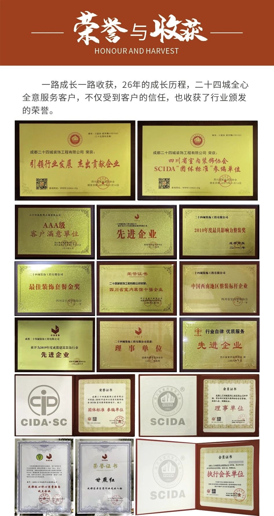 二十四城装饰则在二十六年的发展历程中,经历了市场变迁、行业竞争,“始终坚持品质与服务”,在四川家装市场赢得了“做装修,找二十四城装饰”的口碑。