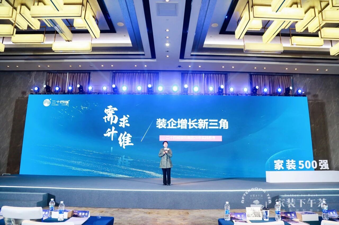 聚光灯照亮台上的老甘妈——二十四城装饰集团总裁,台下是来自全国各地的家装企业决策者。当她说出“设计不是装修的成本项,而是创造生活价值的战略投资”时,会场响起了一片掌声。